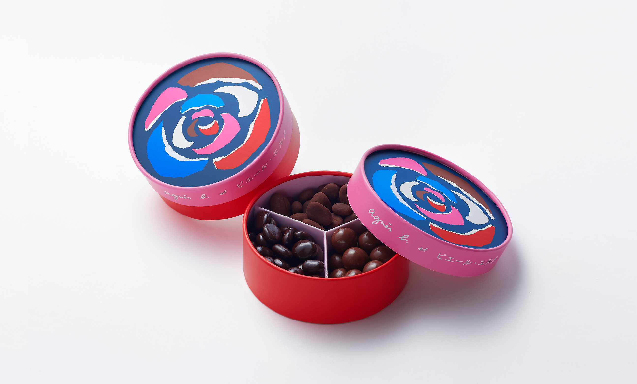 1枚めの画像は、アニエスベーがMade in ピエール・エルメのチョコレートをバレンタイン仕様のオリジナルパッケージにて販売したときの箱です。