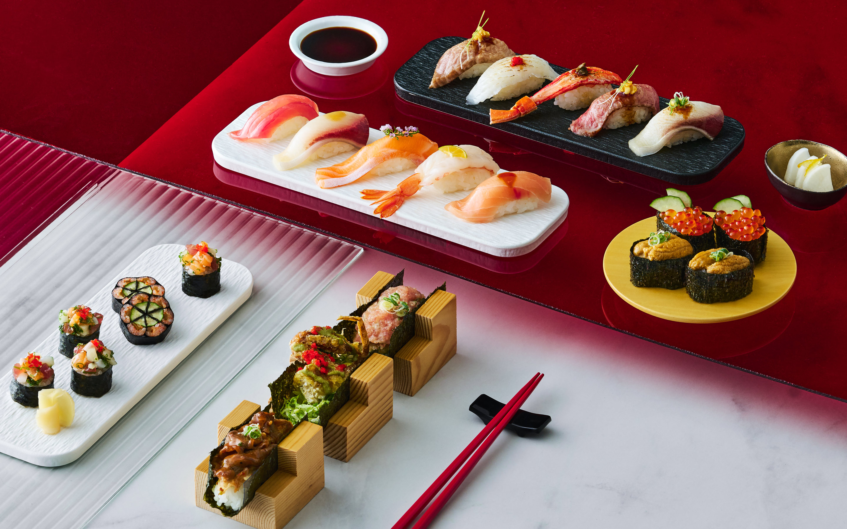 品牌主色為紅與藍,紅色象徵日本文化的熱情與儀式感,藍色呼應海洋與漁獲意象,傳遞食材鮮度。輔以黑白增強視覺層次與識別度,粉紅作為點綴色提升親和力,金色則增添職人料理的質感氛圍。整體色彩系統兼具文化脈絡與視覺吸引力,建立溫暖且專業的品牌調性。